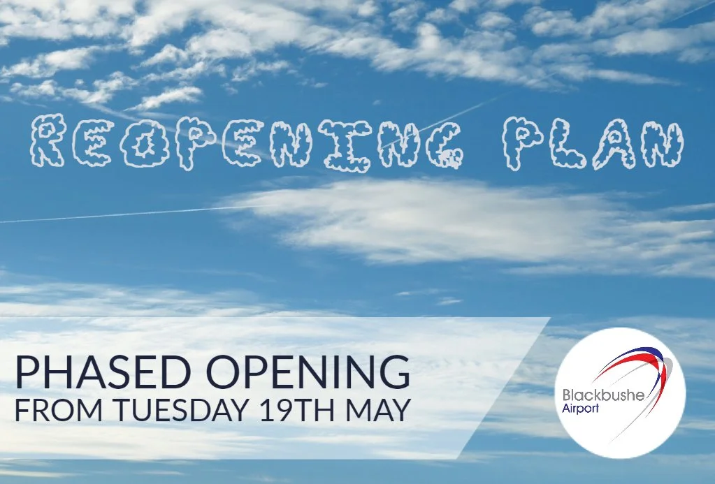 We have targeted a phased reopening of Blackbushe Airport from Tuesday 19th May 2020, although there will most likely be reduced opening hours, days, and facilities available.